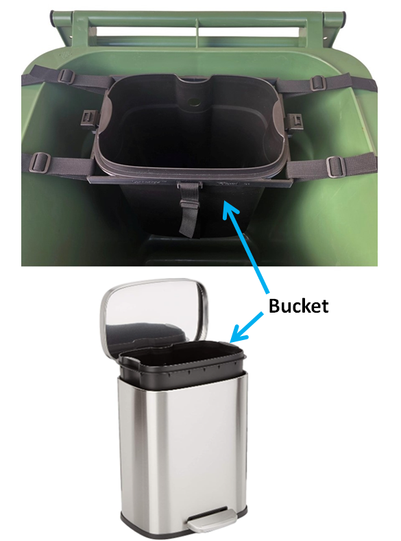 ● Retrieve the empty bucket/liner and put it back to collect food scraps again.